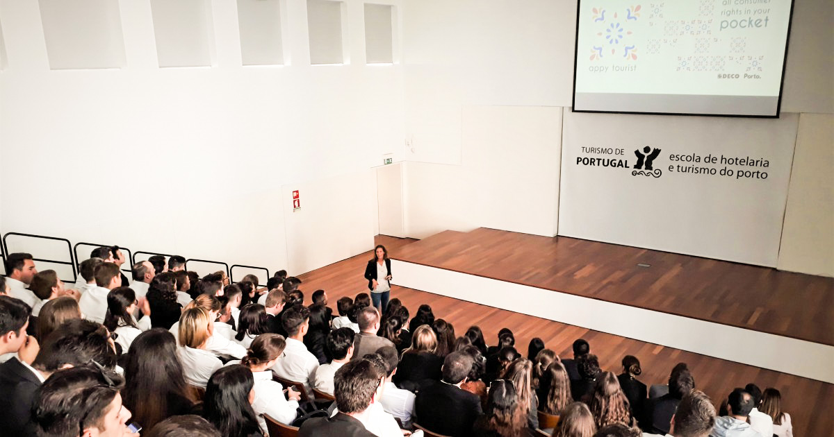 A DECO Norte participou na Semana de Acolhimento aos Novos Alunos da Escola de Hotelaria e Turismo do Porto, no dia 4 de Outubro, com o objetivo de sensibilizar sobre os direitos dos consumidores de turismo e de apresentar a aplicação móvel Appy Tourist, desenvolvida pela Associação.