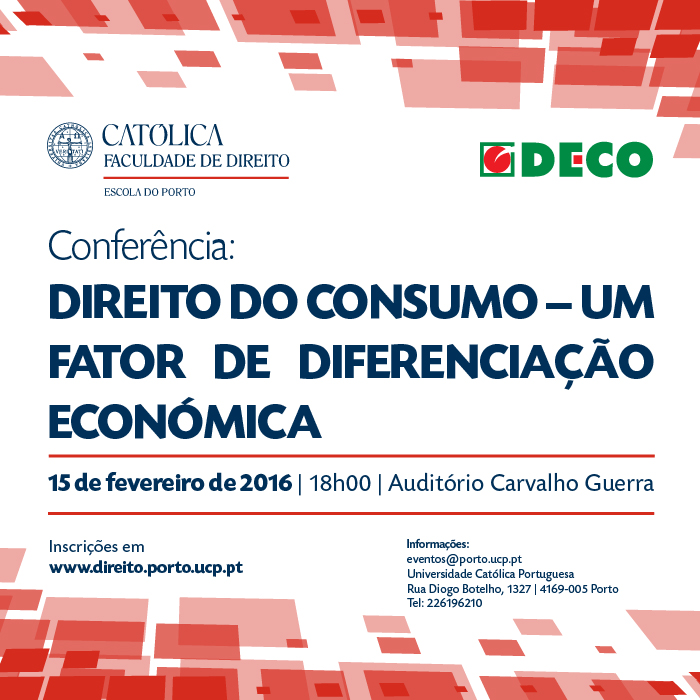 A DECO e a Faculdade de Direito do Porto Universidade Católica Portuguesa promovem a Conferência “Direito do Consumo – um fator de diferenciação económica” no dia 15 de Fevereiro, às 18h00, no Auditório Carvalho Guerra.