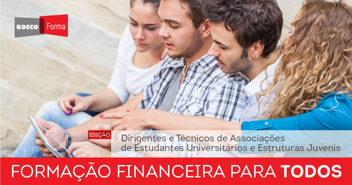 A DECO Forma convida as Associações de Estudantes de Universidades e Institutos, Associações de Jovens Profissionais e outras associações de jovens, que têm contacto direto e de proximidade com esta comunidade e segmento da população a participarem na presente Ação de Formação, certificada na área da formação financeira, para que estes fiquem assim capacitados para assumir o papel de agentes dinamizadores e terem um efeito multiplicador da informação apresentada.